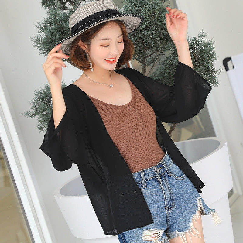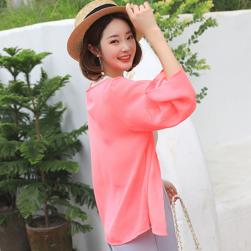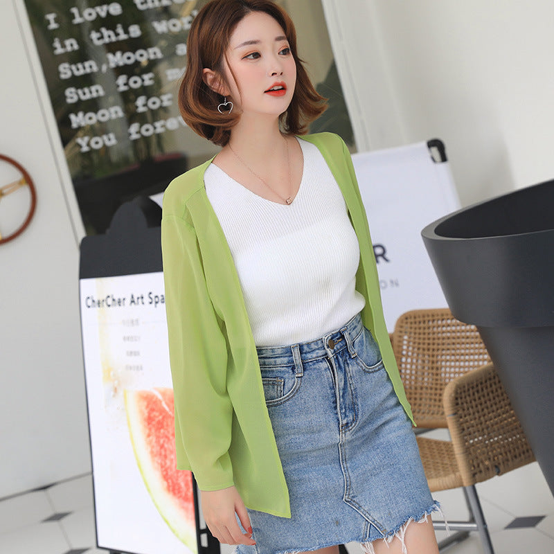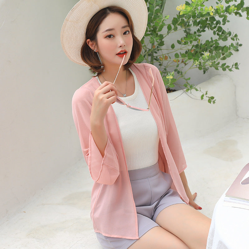 【DPS1688】F765RX-2020春夏新款韩版雪纺衫长袖防晒衣女士薄上衣空调衫打底衫