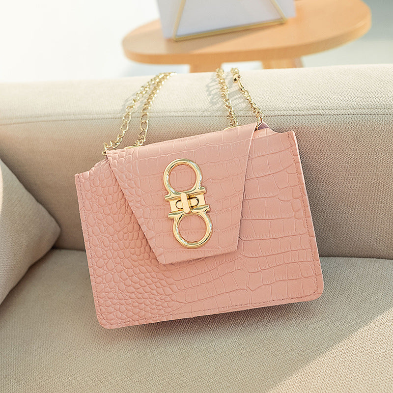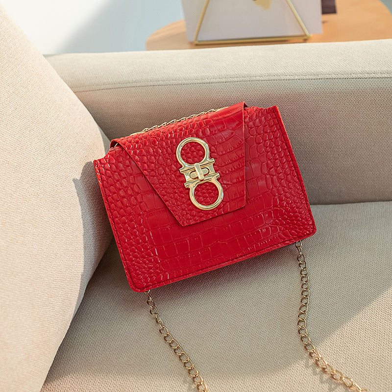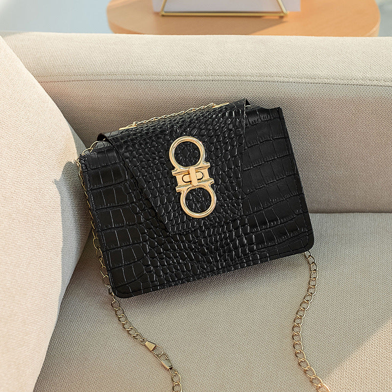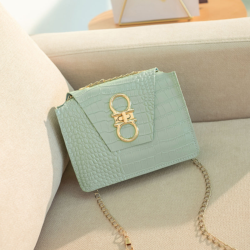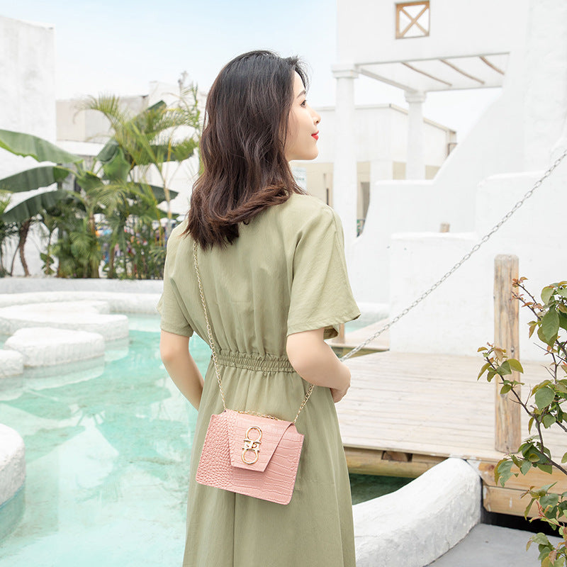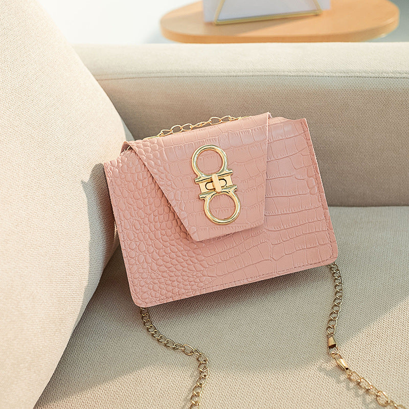 【DPS1688】581-女包2020新款鳄鱼纹金色铁皮锁链条小方包时尚韩休闲手机包小包包