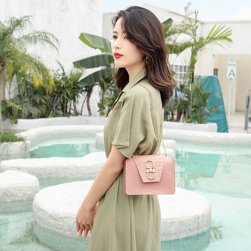 【DPS1688】581-女包2020新款鳄鱼纹金色铁皮锁链条小方包时尚韩休闲手机包小包包