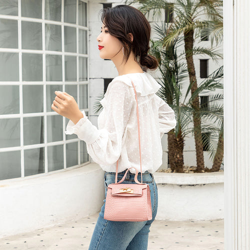 【DPS1688】582-女包2020新款鳄鱼皮锁扣凯莉包小方包时尚韩休闲手机包小包包现货