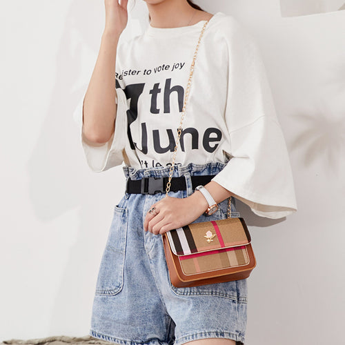 【DPS1688】519-女包2020新款玫瑰格纹撞色链条斜挎小方包时尚百搭手机包现货直销
