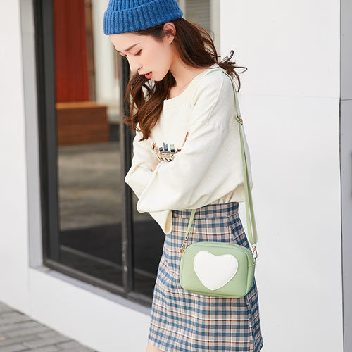 【DPS1688】622-女包2020新款纳帕纹桃心撞色单肩小方包时尚休闲手机包零钱包现货