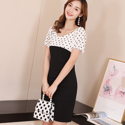 【DPS1688】L802RX-2020新款韩版连衣裙收腰修身显瘦拼接短裙休闲时尚百搭女装