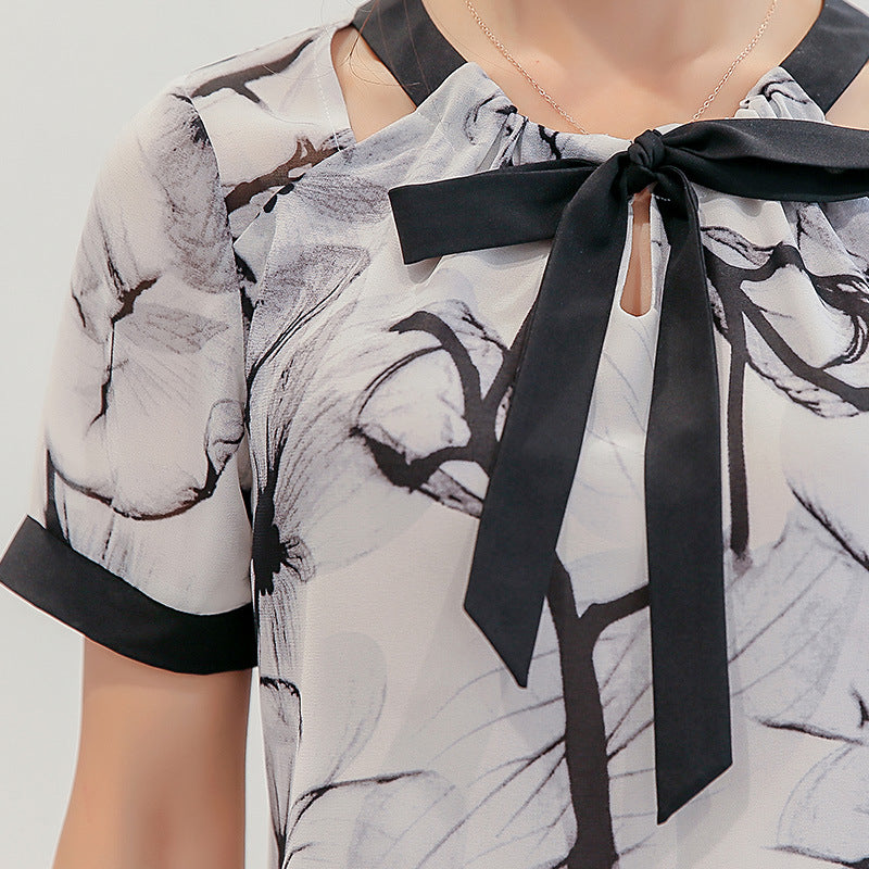 【DPS1688】270RX-2020夏季新款女韩版大码百搭打底衫时尚修身休闲短袖雪纺衫