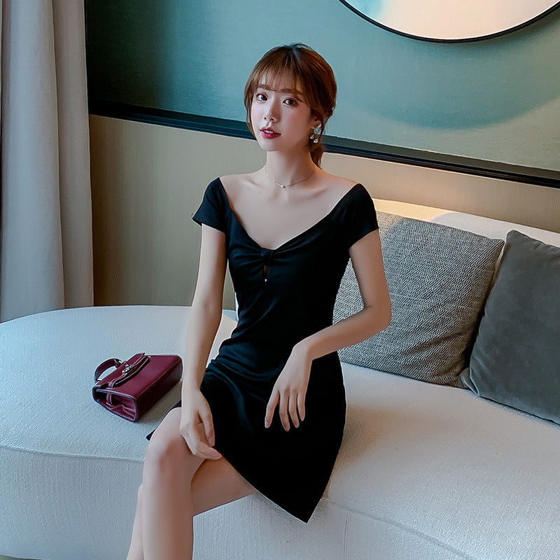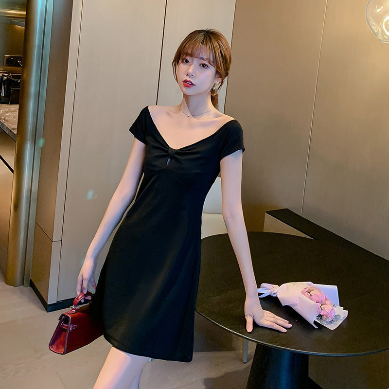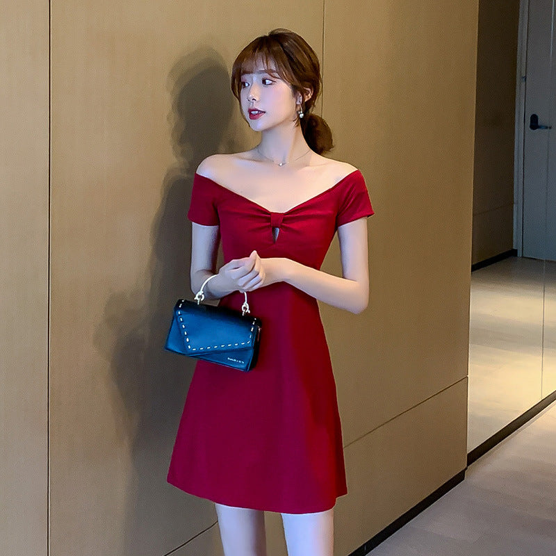 【DPS1688】L1398RX-性感连衣裙女夏2020新款气质一字肩短裙气质短袖裙子轻熟风小个子