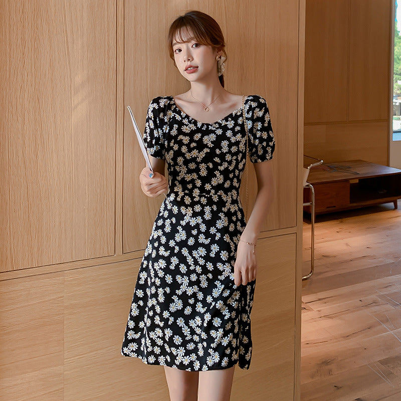 • Muat gambar ke penampil Galeri, 【DPS1688】L1446RX-2020一字肩小雏菊雪纺连衣裙韩版新款夏收腰显瘦气质碎花裙小个子裙子