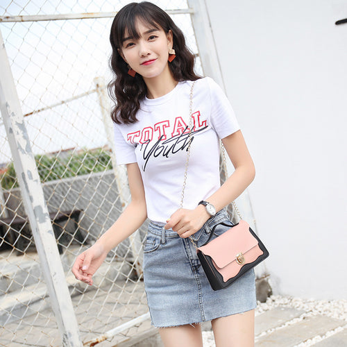 【DPS1688】506-女式包包2020新款猫脸撞色锁扣链条手提斜挎小方包时尚休闲手机包