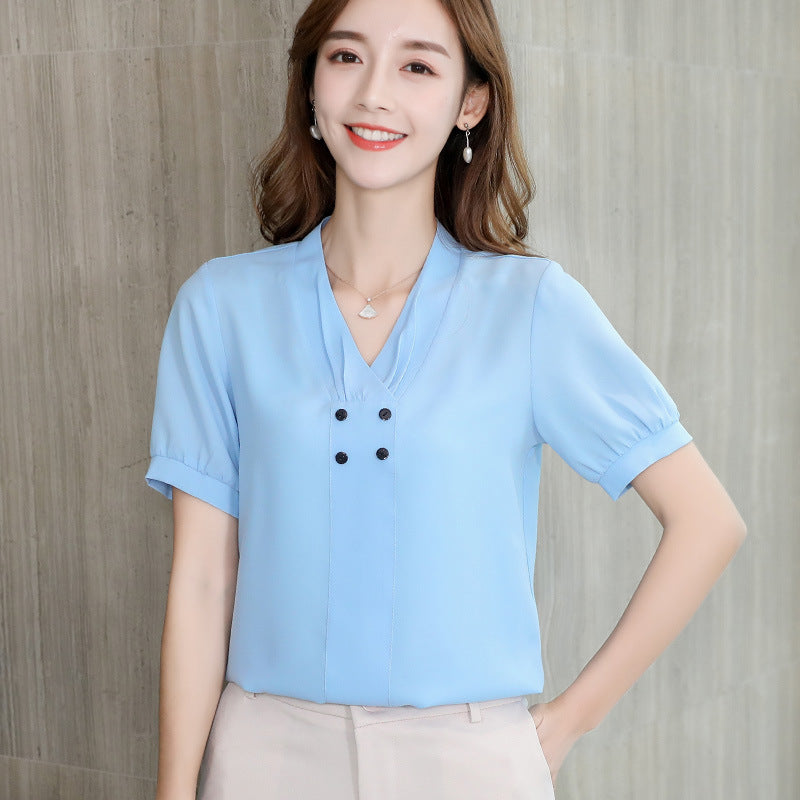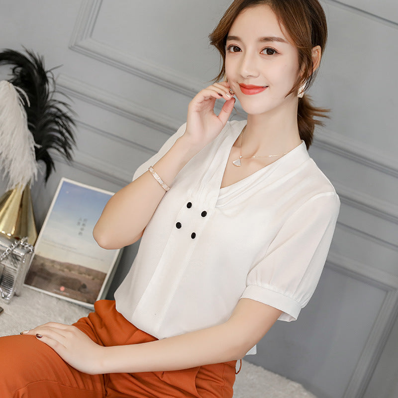 • Muatkan imej ke dalam penonton Galeri, 【DPS1688】C770RX-2020春夏新款韩版修身大码时尚衬衫百搭打底衫休闲雪纺衫女