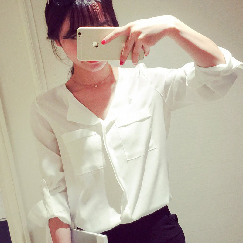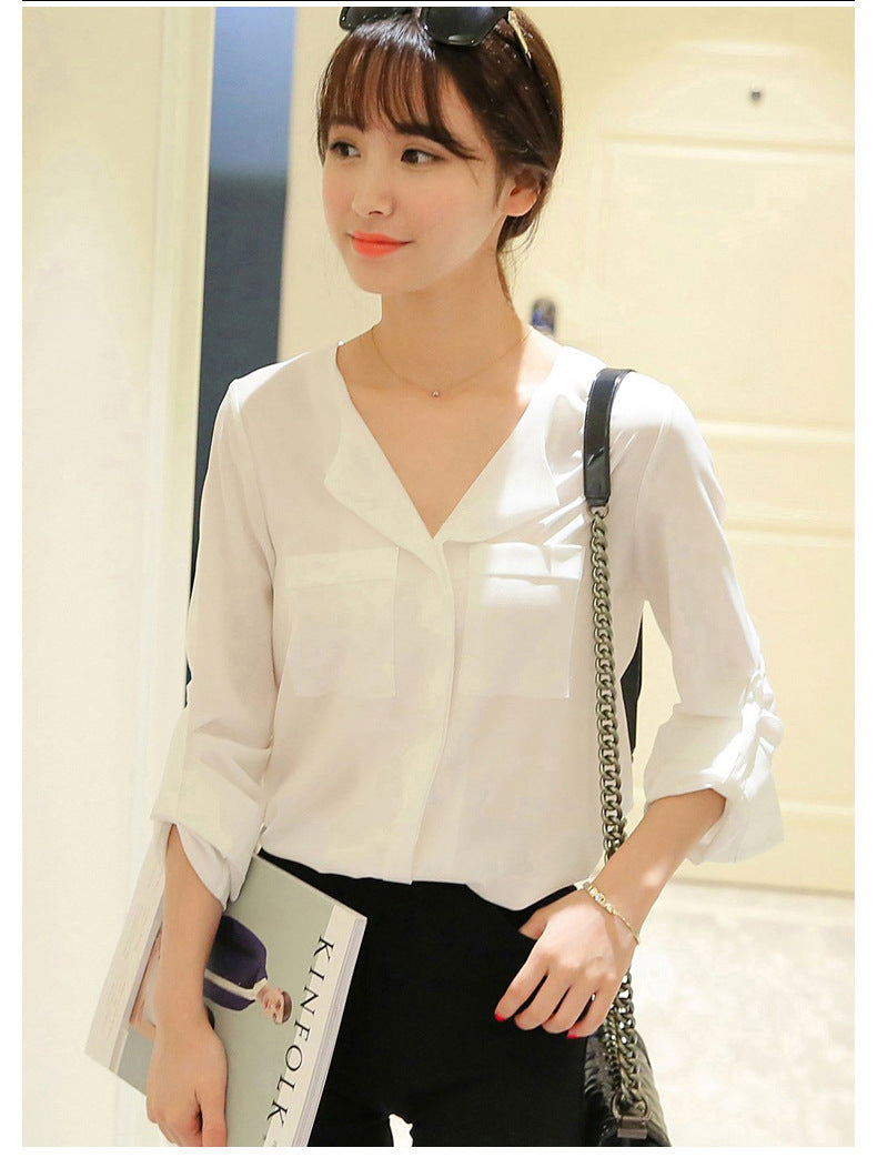 • โหลดรูปภาพลงในเครื่องมือใช้ดูของ Gallery 【DPS1688】C0914-2020春夏新款女韩版衬衣时尚修身大码短袖休闲打底雪纺衬衫