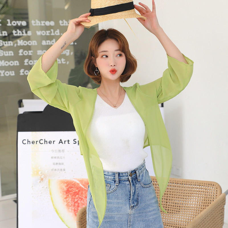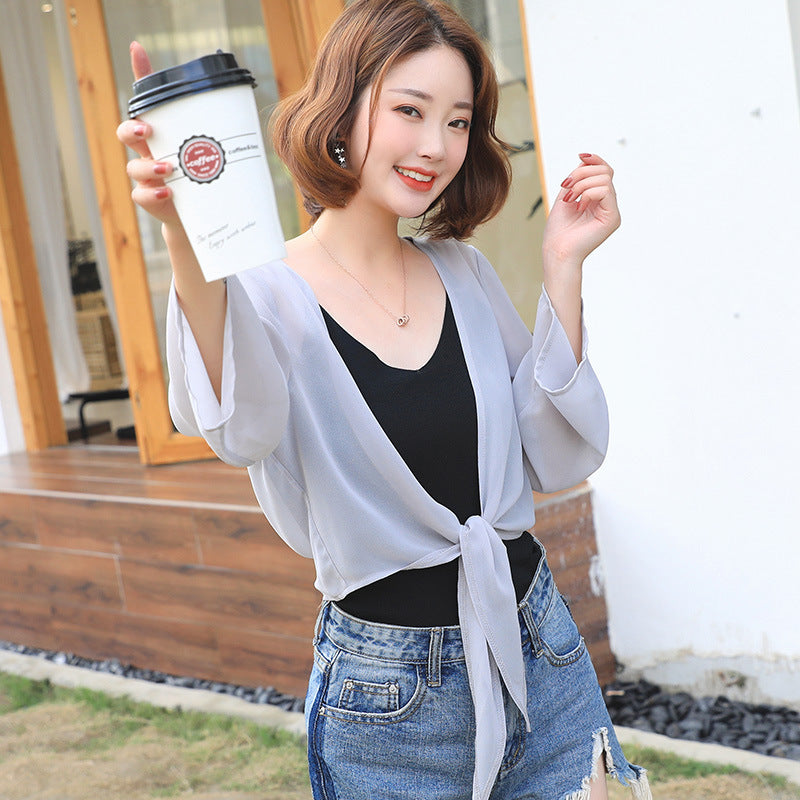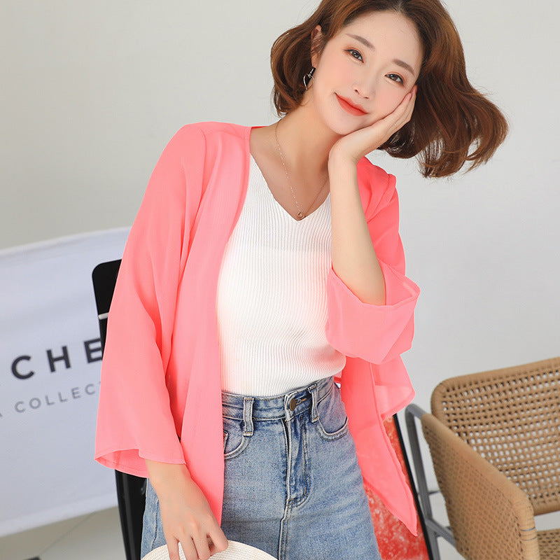 【DPS1688】F764RX-2020春夏新款韩版雪纺衫长袖防晒衣女士薄上衣空调衫打底衫