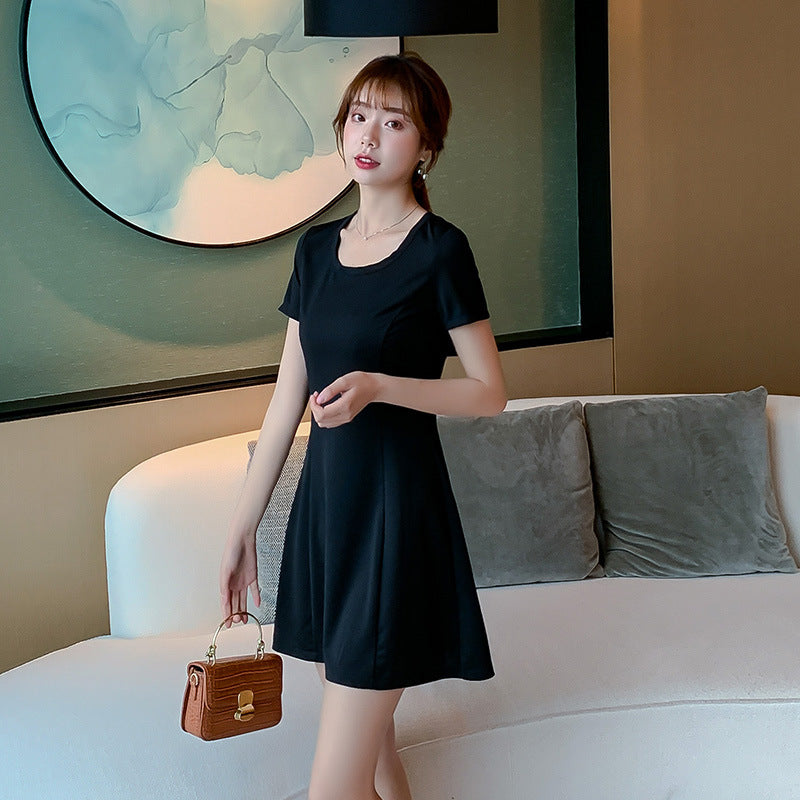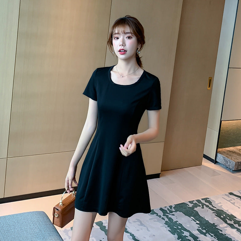 【DPS1688】L1396RX-短袖黑色圆领连衣裙收腰显瘦气质女2020新款小个子裙子轻熟风夏季