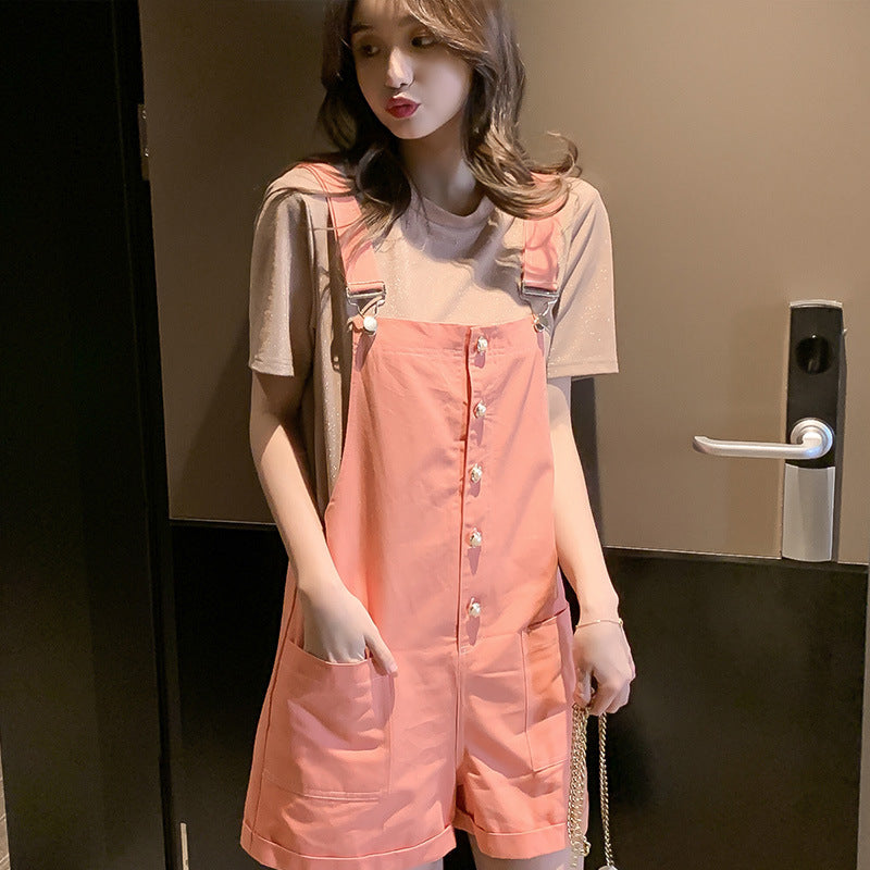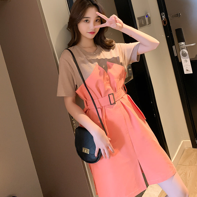 【DPS1688】ZBT0043-2020新款夏季韩版假两件圆领短袖T恤裙仙女森系背带短裤闺蜜套装
