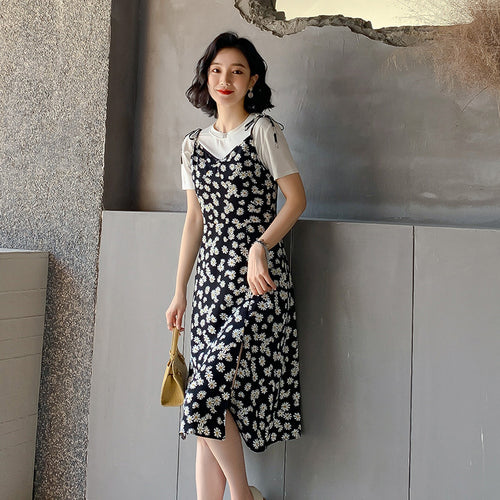 【DPS1688】L1448RX-网红小雏菊连衣裙吊带裙2020新款时尚休闲收腰显瘦雪纺碎花裙气质