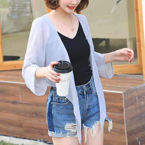 【DPS1688】765RX-2020春夏新款韩版雪纺衫长袖防晒衣女士薄上衣空调衫打底衫