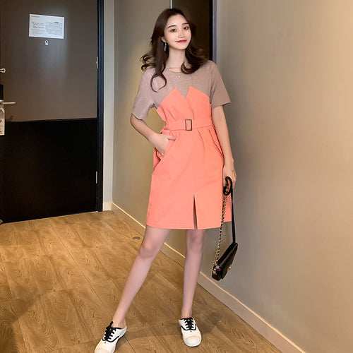 【DPS1688】ZBT0043-2020新款夏季韩版假两件圆领短袖T恤裙仙女森系背带短裤闺蜜套装