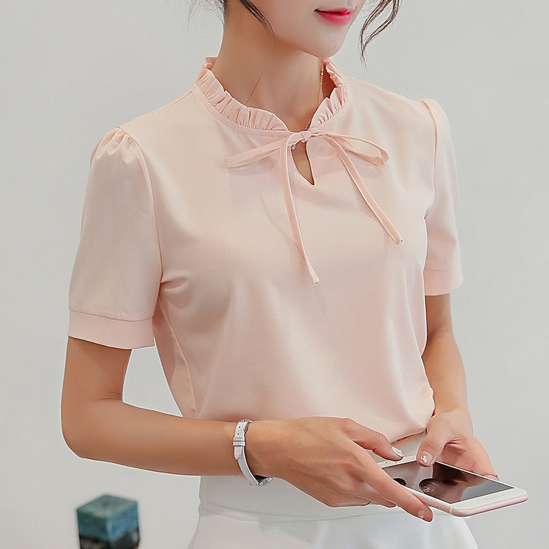 • 將圖片載入圖庫檢視器 【DPS1688】DC001-2020春夏新款女韩版衬衣时尚修身大码短袖休闲打底雪纺衬衫